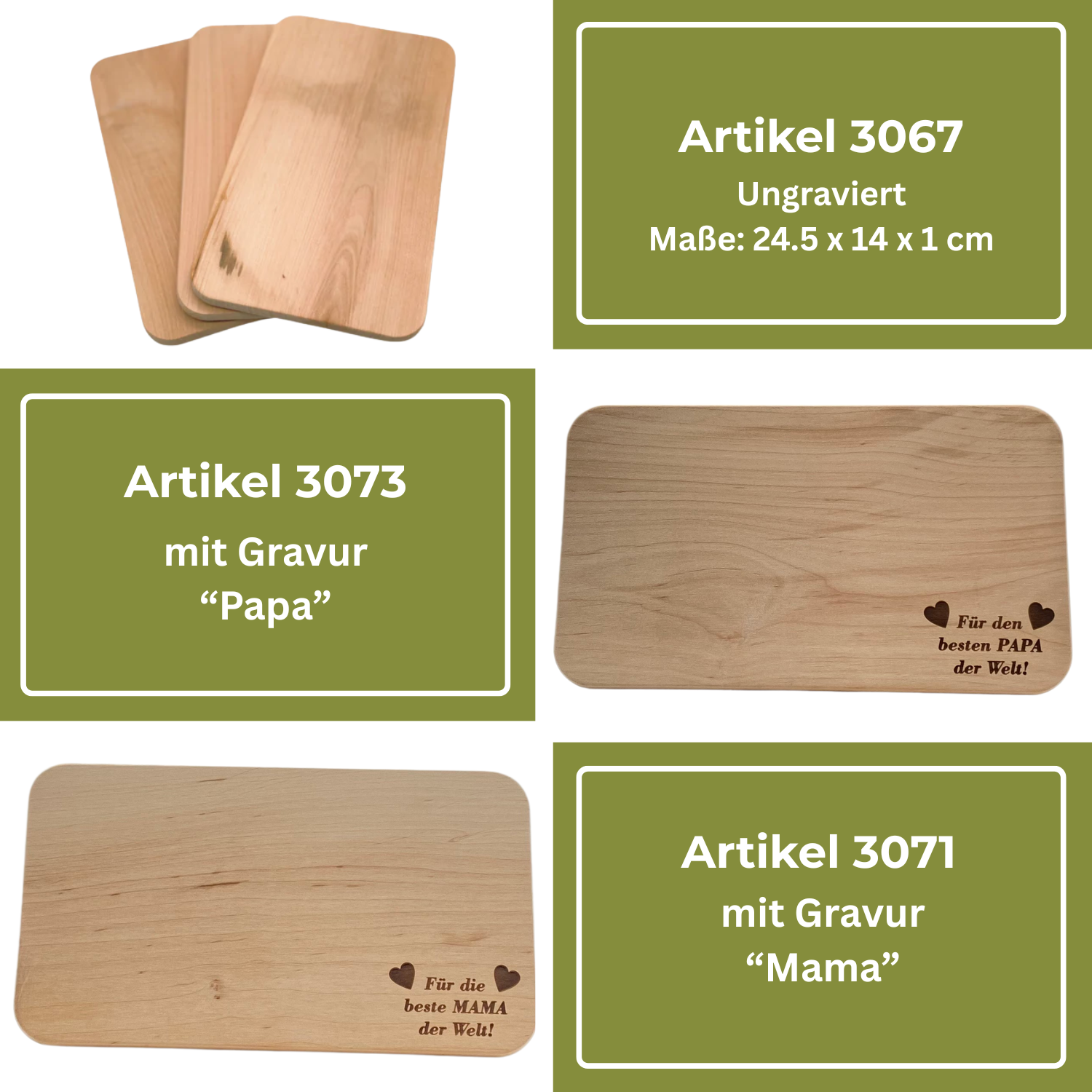 Besonders beliebt: Unsere gravierten Schneidbretter, direkt mit liebevollen Motiven für Mama oder Papa erhältlich – eine wunderschöne Geschenkidee mit persönlicher Note.