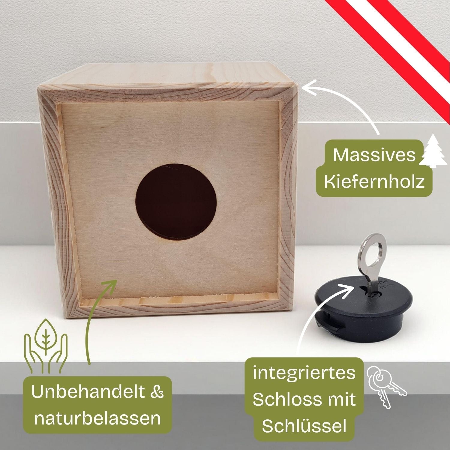 Wooden money box with lock – Beer box | Coffee time | Unprinted – Money box handmade in Austria