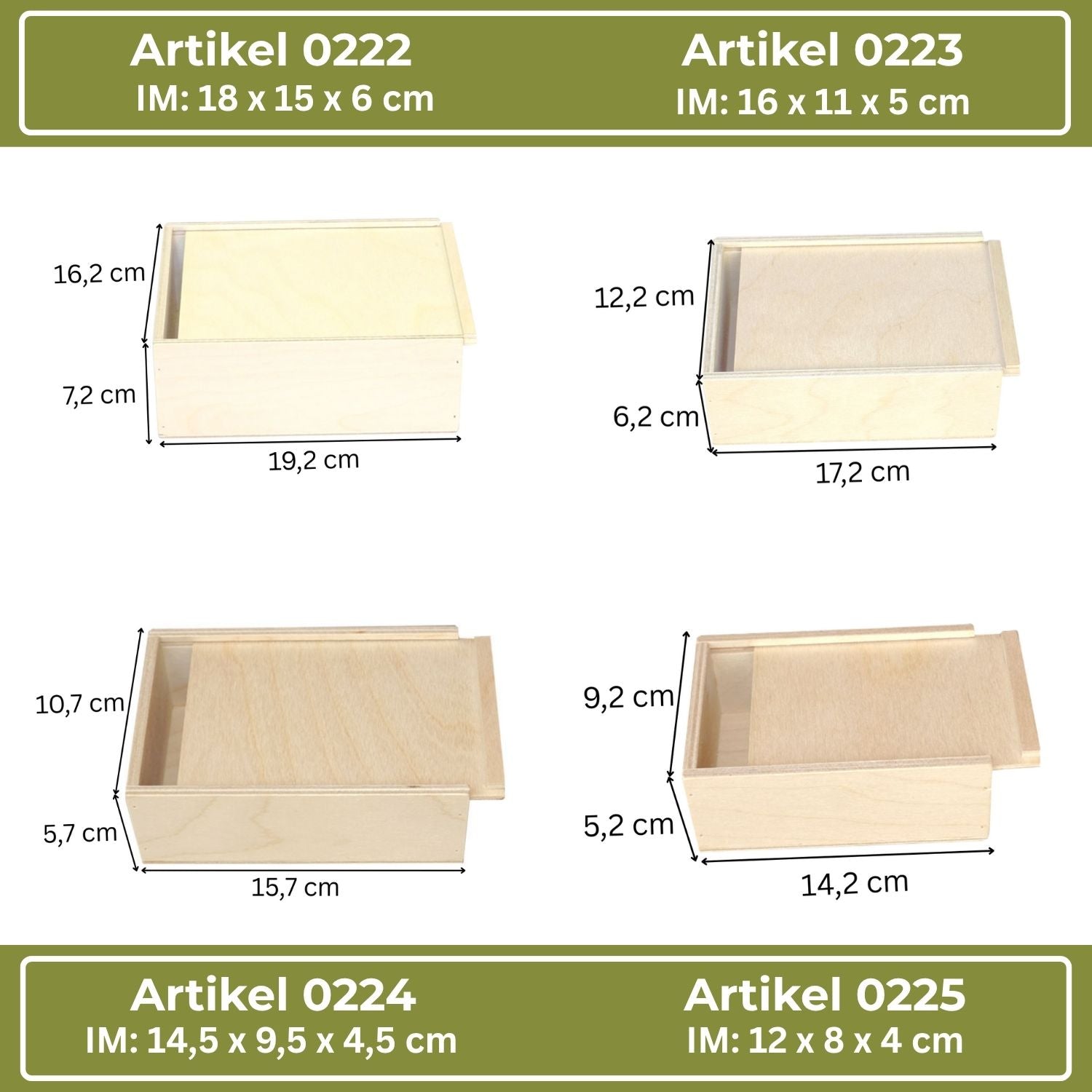 Whether for gifts, jewelry, small bottles, craft supplies, or keepsakes – these wooden boxes are true all-rounders. The easy-to-open sliding lid keeps your contents safely stored and stylishly presented.