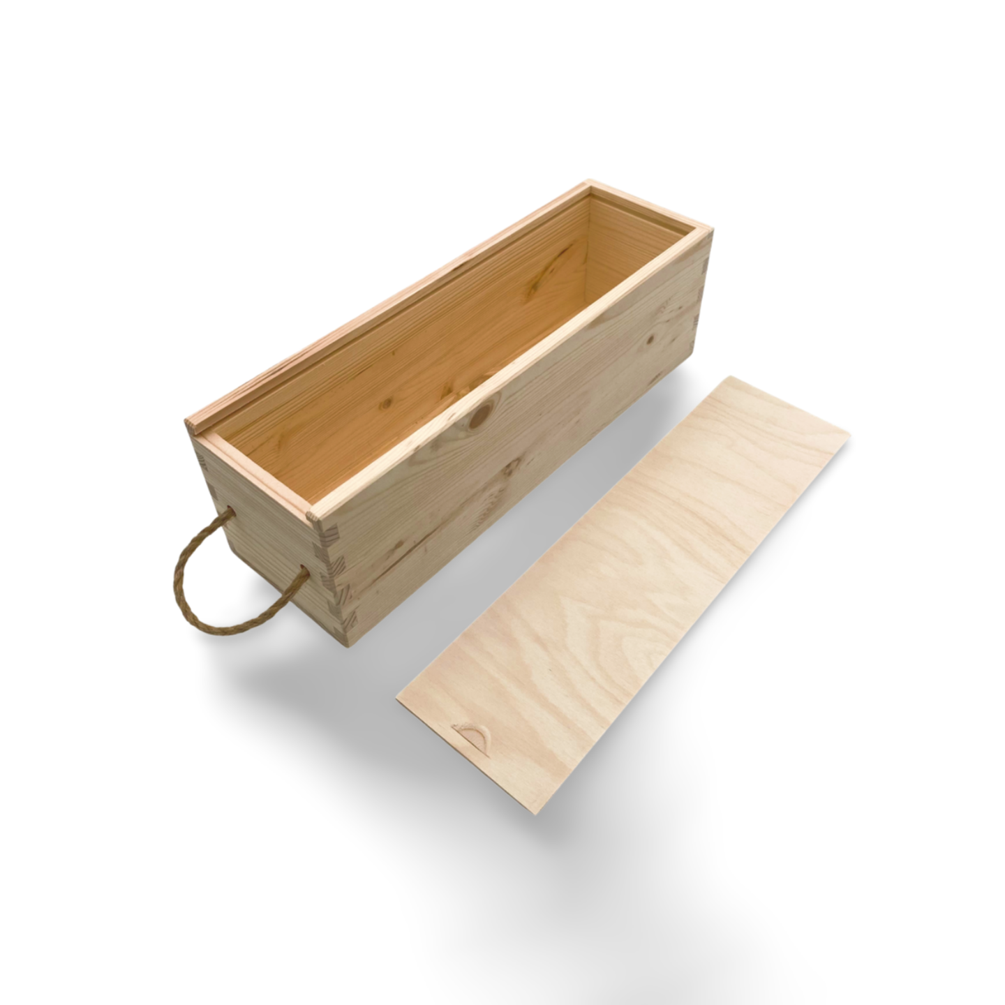 Elegante Holzkiste aus Kiefervollholz mit integriertem Tragegriff